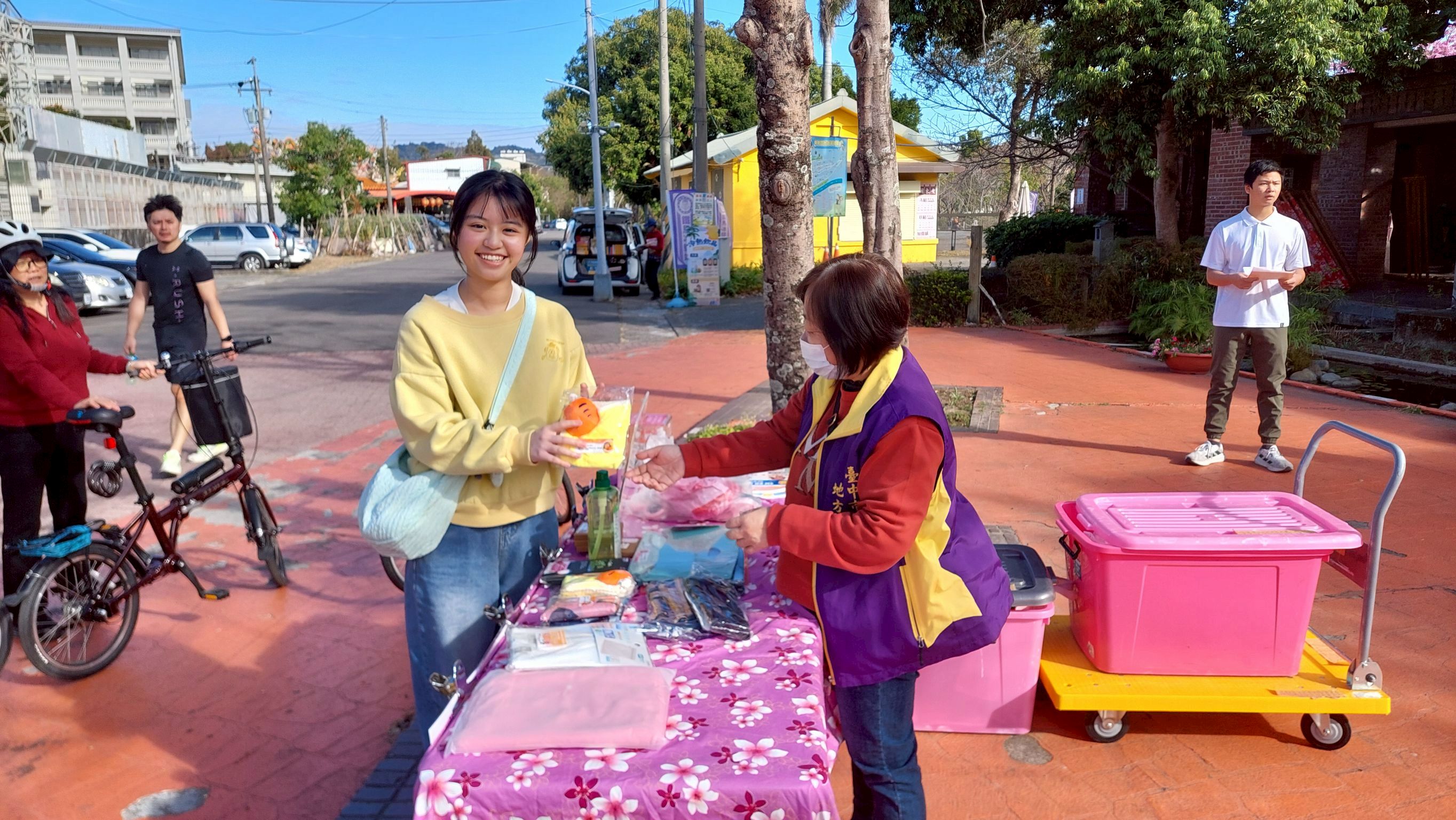 參訪的民眾在參與「聽客聲、講客話、品客味」愛客迎春活動之餘,來到租稅宣導攤位下載實用的「統一發票兌獎APP」,並踴躍捐贈發票兌換精美實用的宣導品。