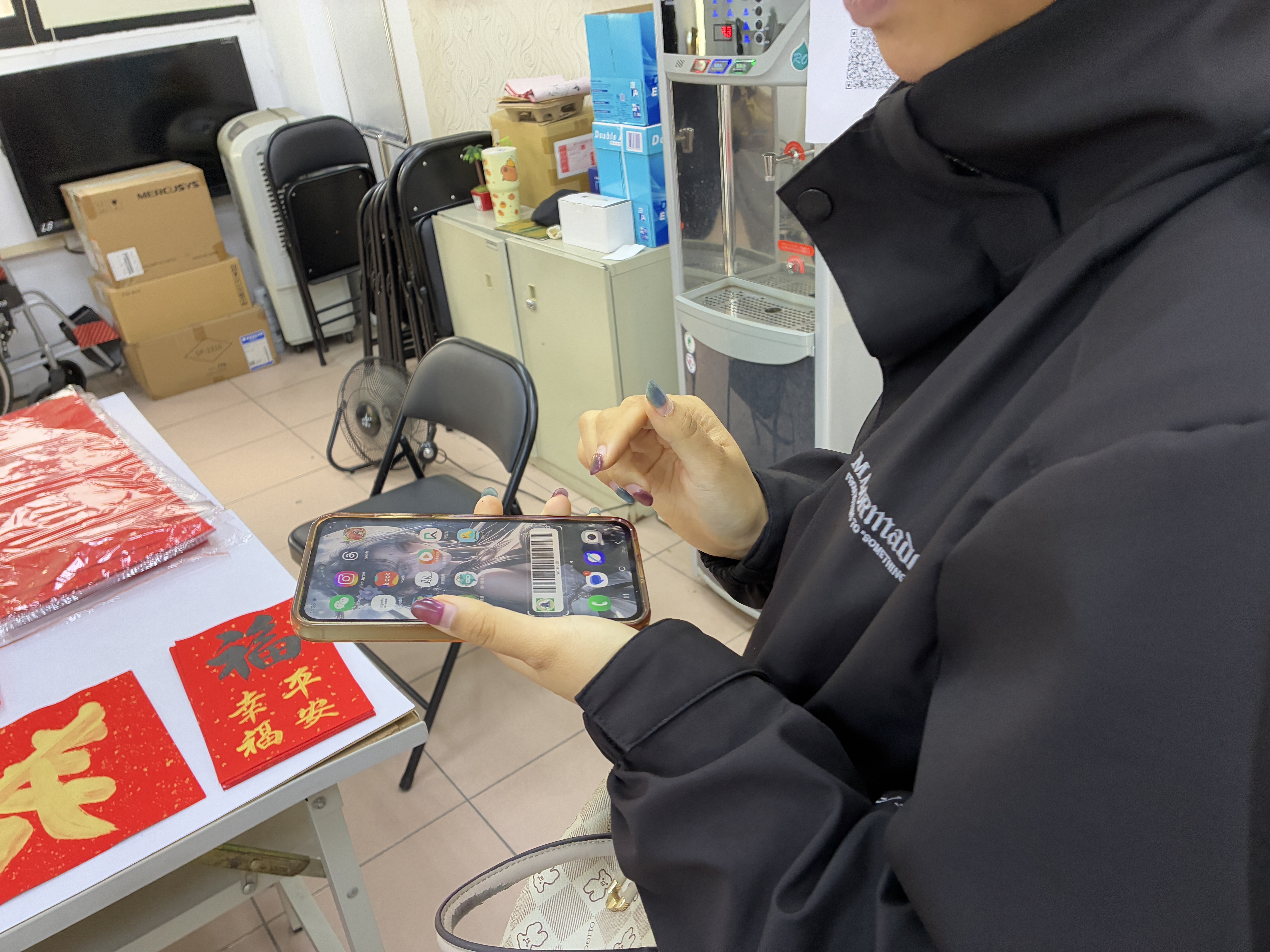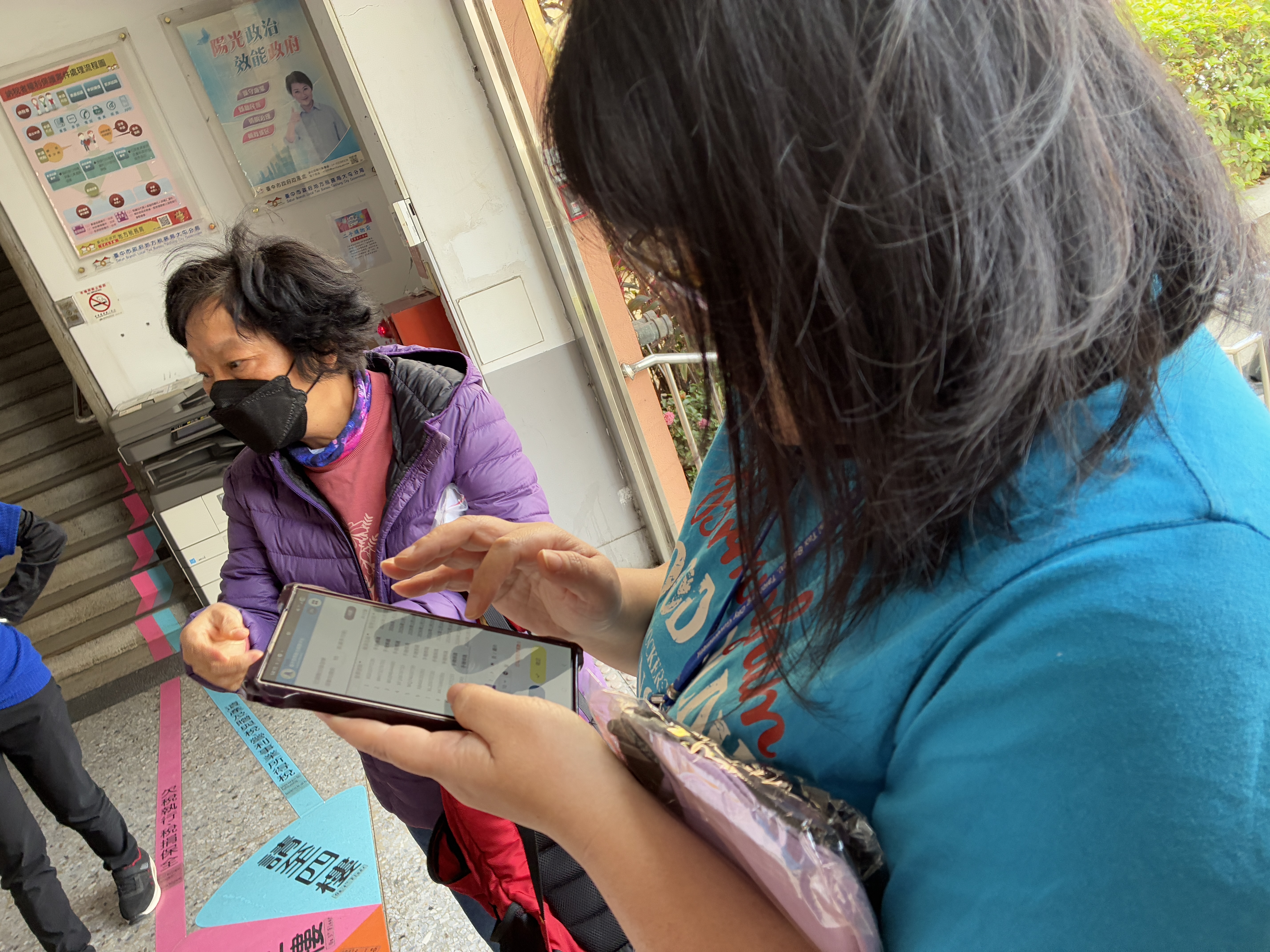 宣導人員利用手機小工具,將條碼置頂於桌面上,使用上更加便利。