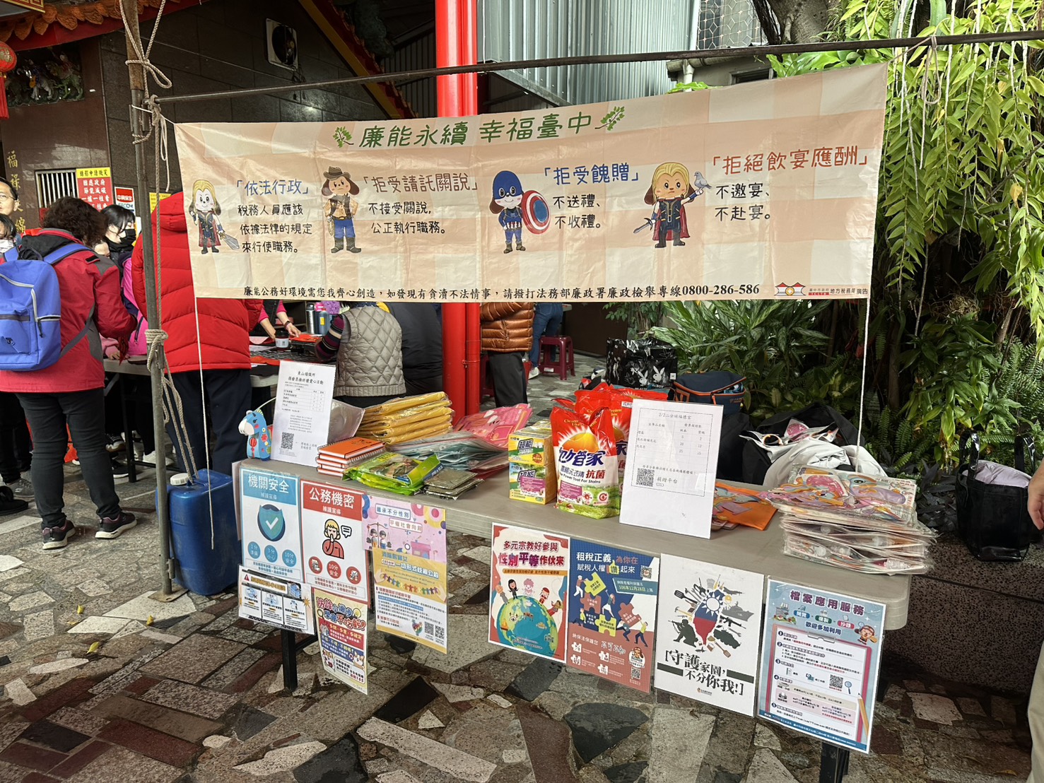 懸掛廉能永續、性別主流、全民國防及檔案管理等文宣,擴大宣傳效益。