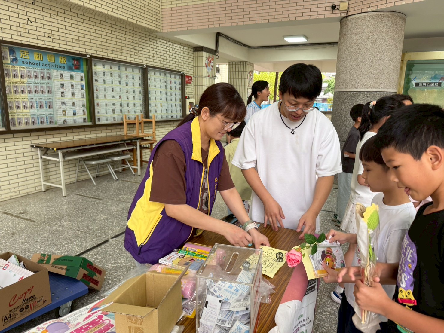 大新國小的小朋友都非常守秩序,排隊等待闖關及捐發票換好禮,值得讚許!